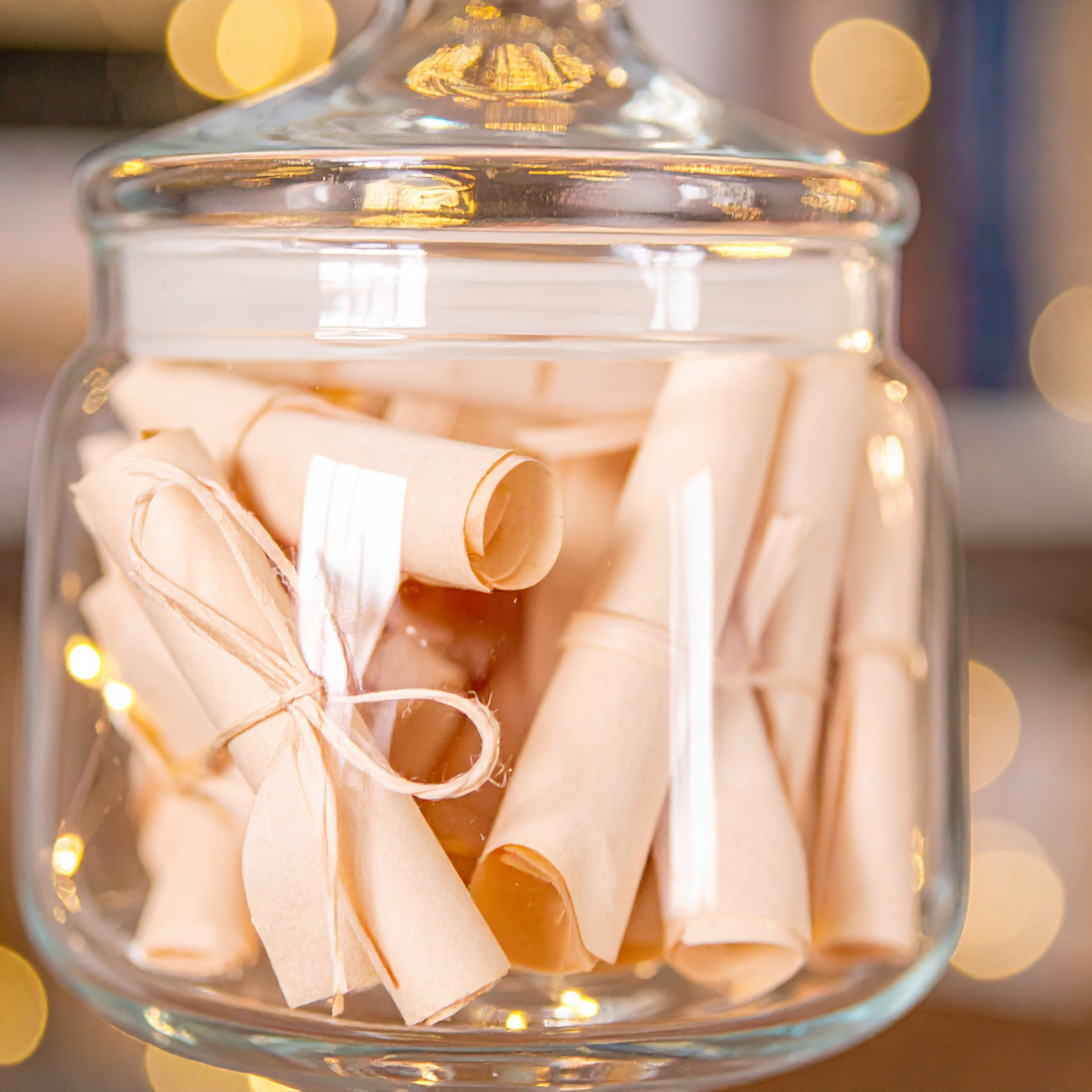 2. Schritt 2: Sammle die Glücksmomente. Immer wenn dir etwas Schönes passiert – sei es ein Sonnenstrahl, eine Tasse guter Kaffee, ein nettes Wort von einem Kollegen oder ein Erfolgserlebnis –, notiere diesen Moment auf einem kleinen Zettel und werfe ihn in das Gefäß.